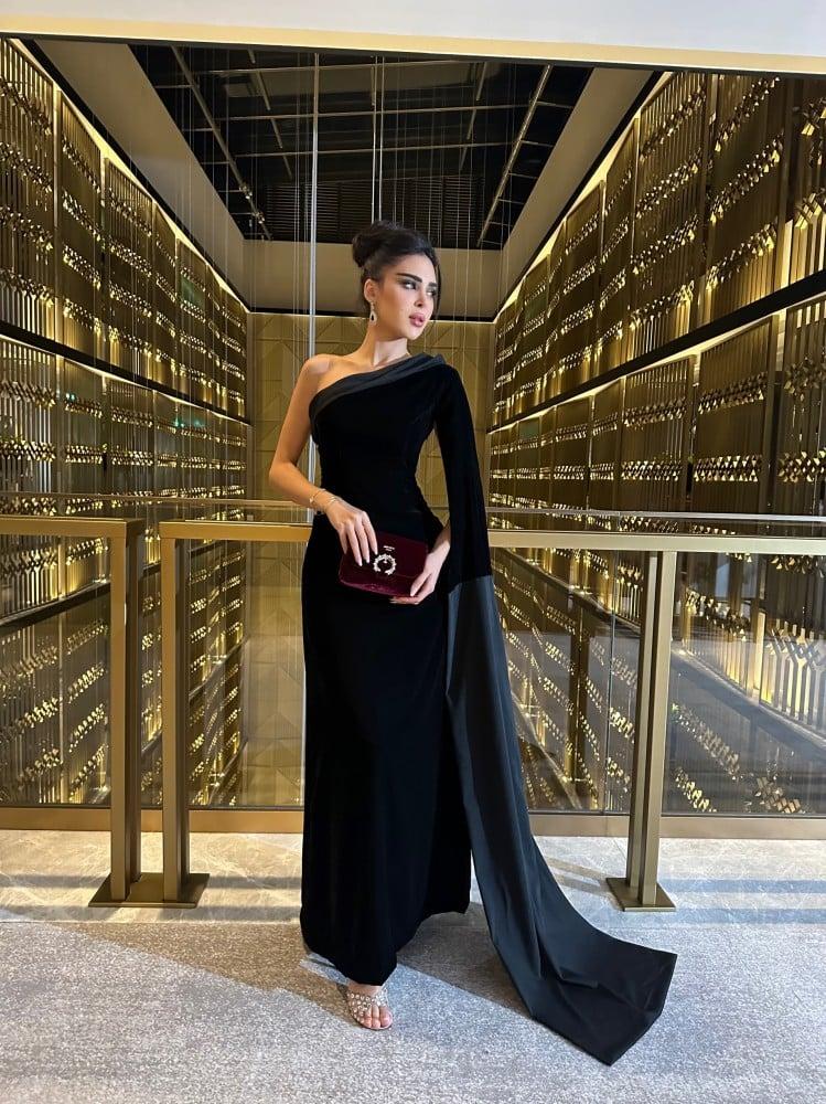 فستان اسود مخمل مع شال