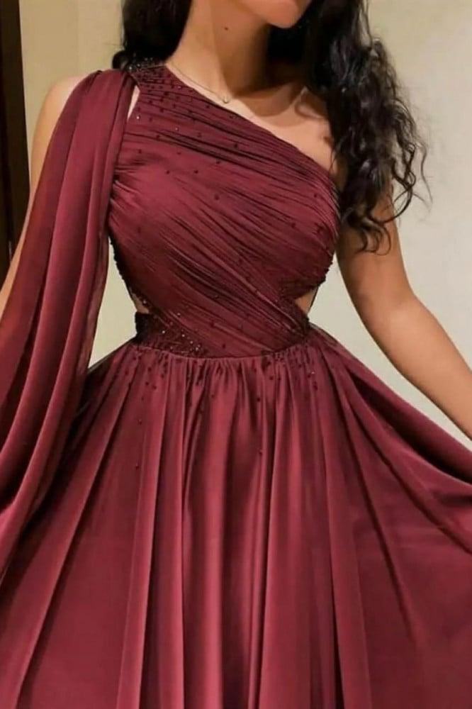 يمتاز الفستان بنسيجه الفاخر والناعم الذي يمنحكِ شعورًا بالراحة وسهولة الحركة، بينما ينسدل بطول كامل بانسيابية على جسدكِ ليضفي على حضورك لمسة من الأناقة الراقية. تصميم الكتف الواحد الممتد يعزز من شعور الثقة بالنفس، ويضيف لمسة من الفخامة إذا كنتِ تتطلعين لإبهار الجميع خلال مناسباتك الخاصة.