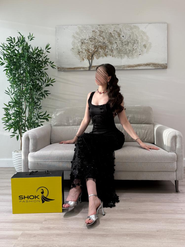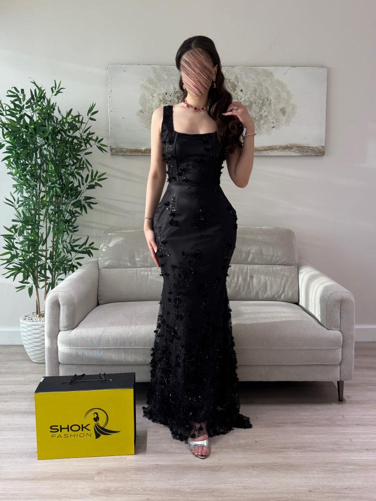 - النوع: فستان سهرة طويل بتصميم ضيّق يبرز القوام بانسيابية أنثوية جذّابة.