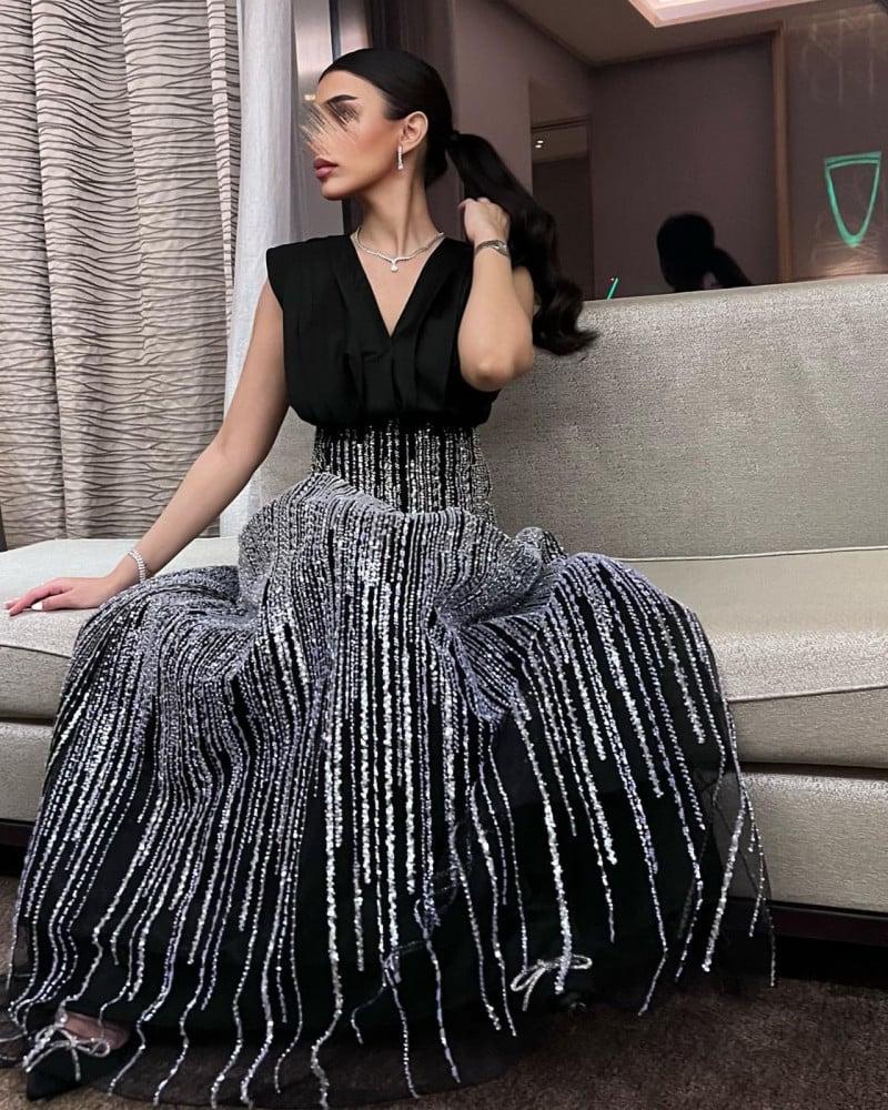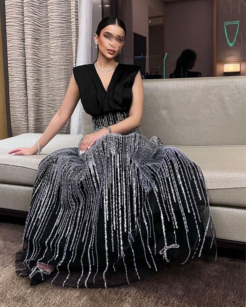 فستان خامه تل مطرزه كبيوتر وفصوص والصدريه تفته