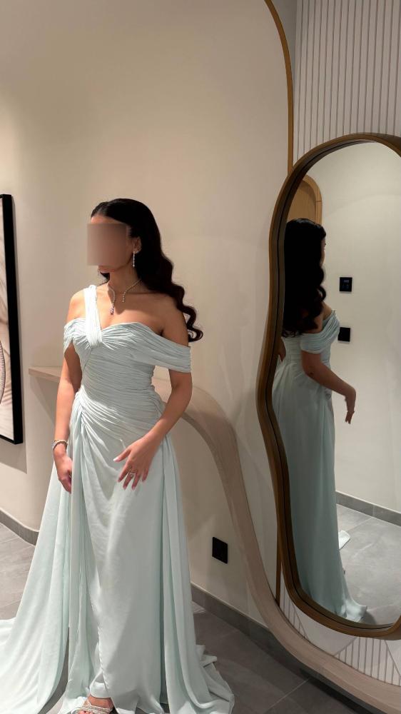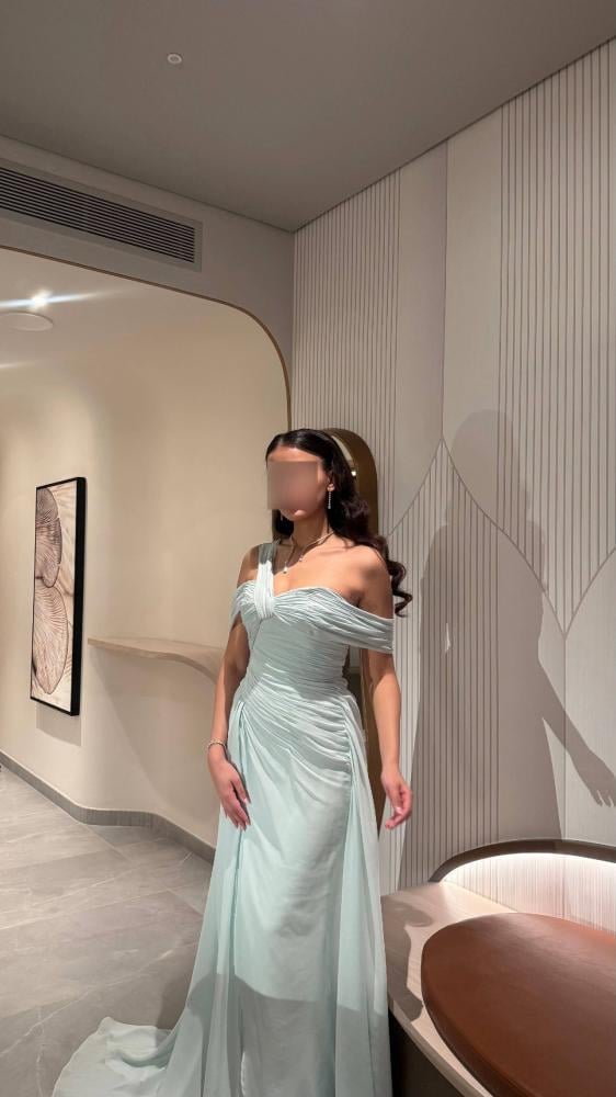 فستان طويل بتصميم أنيق بلون وردي لامع مائل للذهبي، مصنوع بالكامل من قماش مرصع بالترتر البراق الذي يمنح إطلالة فاخرة لافتة للأنظار. يتميز بقصّة أوف شولدر تكشف الكتفين، مع حزام خفي يحدد الخصر ويبرز القوام بشكل أنثوي جذاب. تنورته منسدلة بانسيابية مع ذيل خلفي قصير يضيف لمسة ملكية، مما يجعله خياراً مثالياً للحفلات والمناسبات المسائية الفاخرة