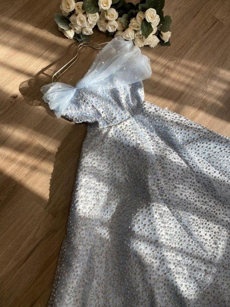 فستان سهره راقي خامه تل مطرز لؤلؤ كامل
