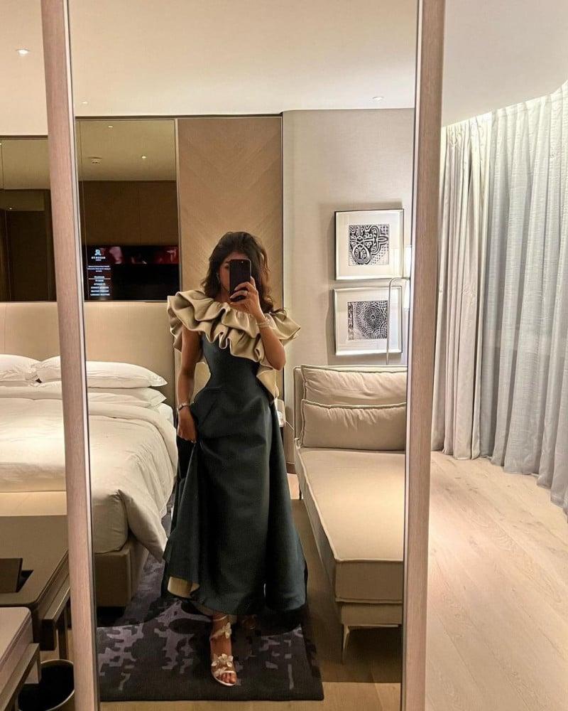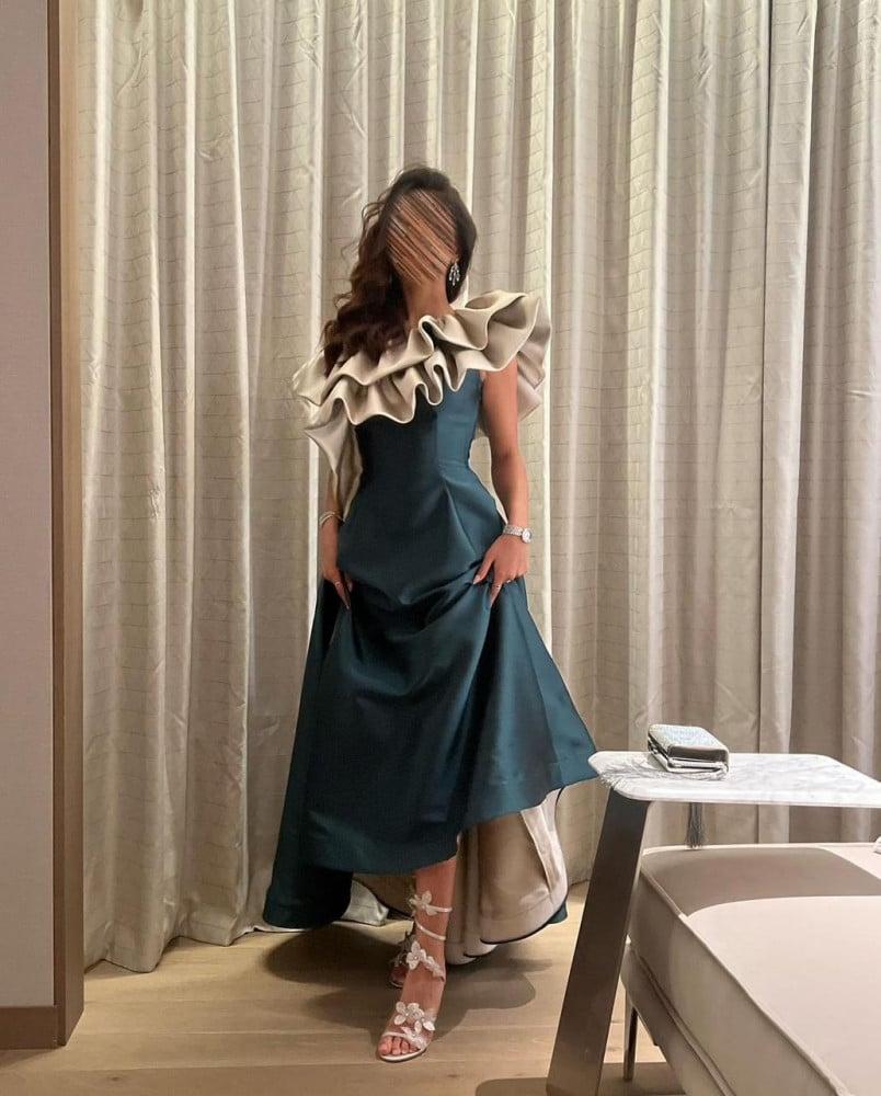 فستان ورده زيتي بتصميم عصري للمناسبات